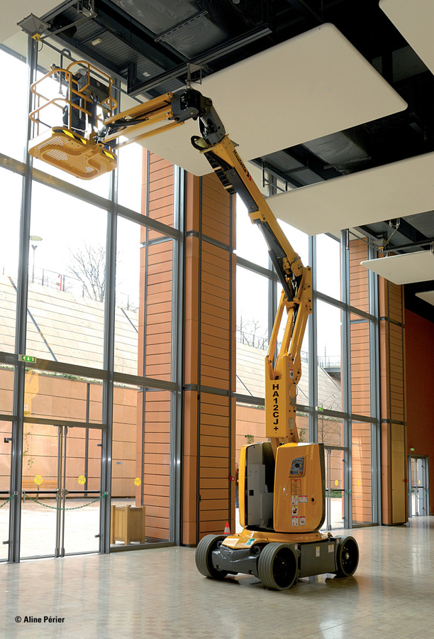 Haulotte HA 12 CJ+ je kompaktní elektrická kloubová plošina určená pro práce ve výšce až 11,75 metrů v interiéru i exteriéru. Díky šířce pouhých 1,20 m a průjezdné výšce 1,99 m snadno projede standardními dvojitými dveřmi i do stísněných prostor – hal, skladů nebo obchodních center.
